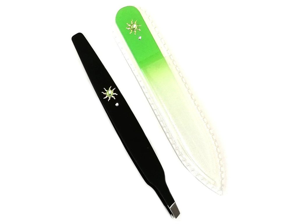 BOHEMIA CRYSTAL SET Swarovski - zelený skleněný pilník 90mm + černá šikmá pinzeta 97mm