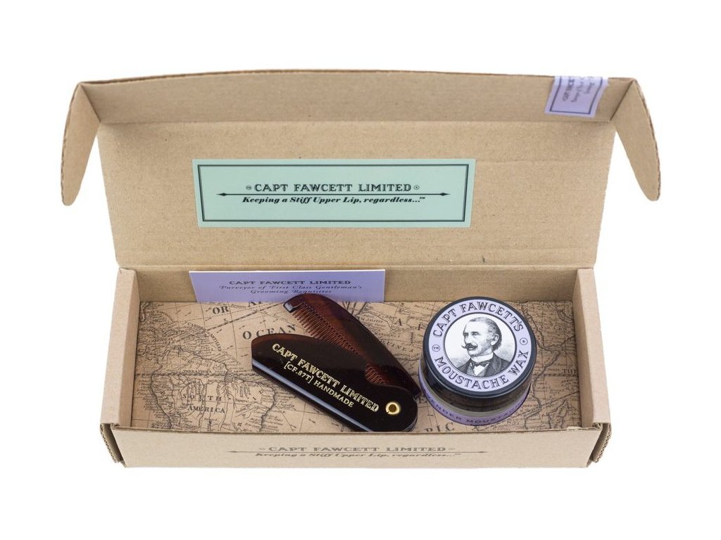 Sada obsahující vosk na knír vonícím po levanduli a gentlemanské tradici anglické značky Captain Fawcett a praktický skládací hřeben na knír, který se vejde ideálně do kapsy. Sada je tak ideální volbou pro každého muže, který chce mít knír pod kontrolou – ať už je ostříleným barberem nebo domácím elegánem s láskou ke klasice.
