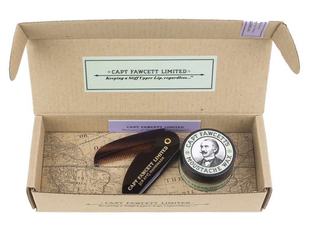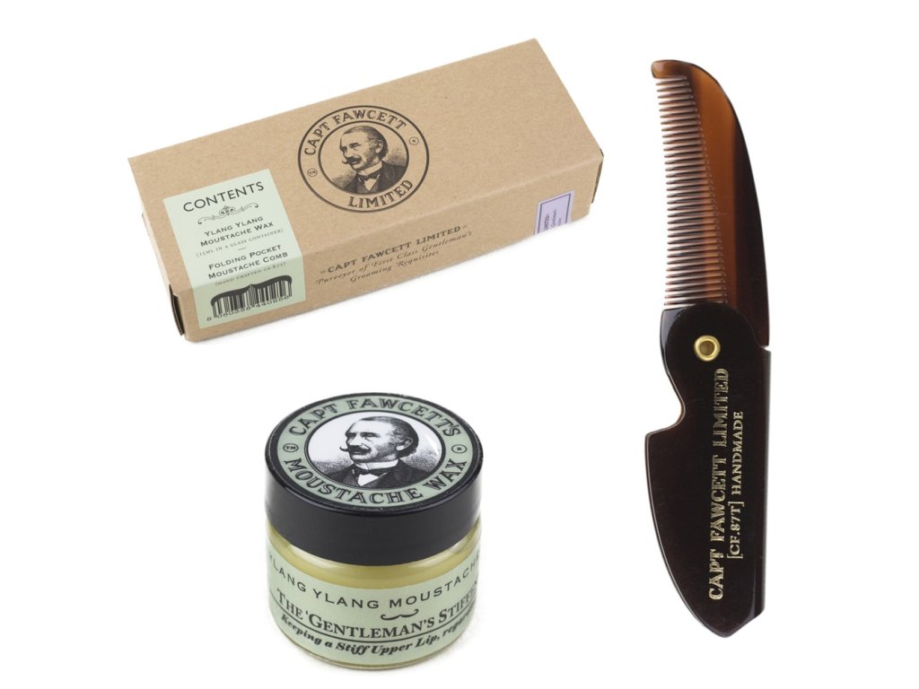 Dárková sada vosku a skládacího hřebínku na knír CAPTAIN FAWCETT Ylang Ylang - legendární péče pro legendární knír.