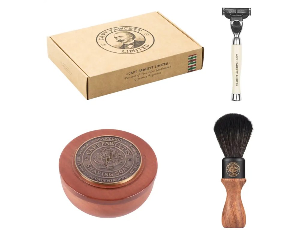 Dárková sada mýdla, štětky a Mach 3 strojku na holení CAPTAIN FAWCETT Scapicchio vám zajistí, že holení bude slast a výsledek bude nenapadnutelný.