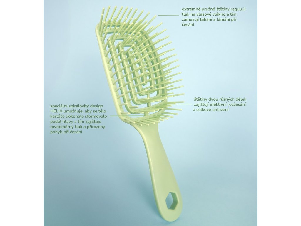 Spirálovitý design – zajišťuje rovnoměrný tlak a pohodlné česání.