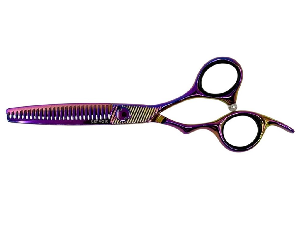 Profesionální prostřihávací nůžky Mr. Mustache Craft Pink gold z VG10 japonské oceli nabízejí precizní střih, mimořádnou ostrost a luxusní duhový design s převládající růžovou barvou. Díky titanovému povlaku jsou extrémně odolné. Ergonomické s 30 zuby poskytujícími perfektní efilační výkon. 5letá záruka kvality.