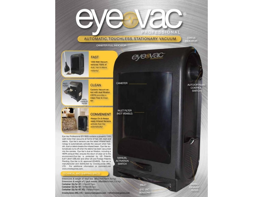 EYE VAC Professional Automatický bezdotykový a bezsáčkový vysavač 1400W