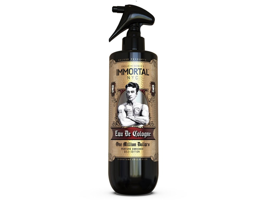 Immortal One Million Dollars Eau de Cologne kolínská voda ve spreji 500 ml. Skvělá a velmi oblíbená vůně One Million ve velkém 500 ml balení kolínské vody s rozprašovačem pro dlouhodobé používání v domácím prostředí nebo k profesionální péči v barbershopech či holičstvích.