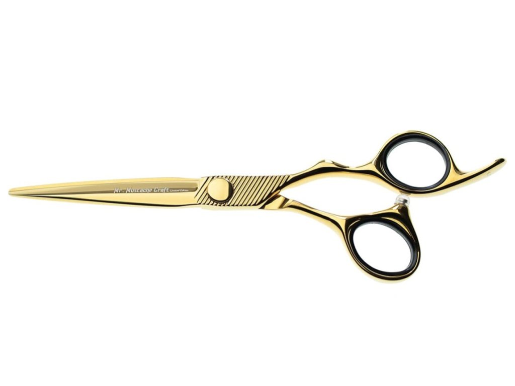 Profesionální nůžky Mr. Mustache Craft Gold z VG10 japonské oceli spojují luxusní zlatý design, ergonomii, extrémní odolnost a mimořádnou ostrost. Vhodné pro všechny techniky střihu. Ideální volba pro náročné stylisty s 5letou zárukou kvality.