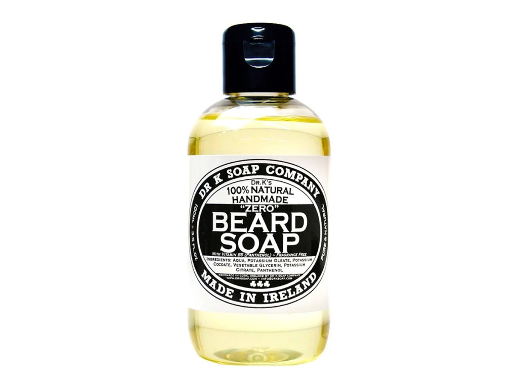 Ručně vyrobené mýdlo na plnovous DR K's Beard soap Zero se 100% přírodním složením je jemné tekuté mýdlo obsahující pro-vitamín B5 (panthenol) a glycerin pro luxusní a zdravé vousy s přirozeným leskem. Neobsahuje žádnou vůni.