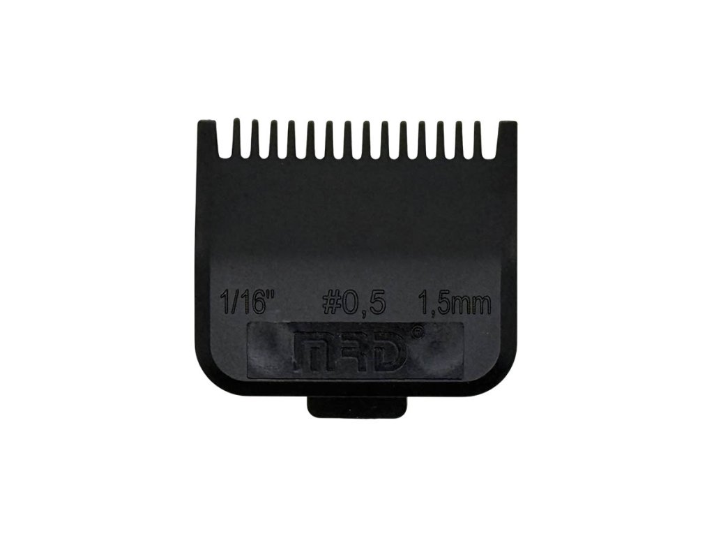 Pevný, plastový náhradní nástavec vhodný pro všechny střihací strojky (clippers) značky MRD Pro. Výška střihu je 1,5 mm. Dodáván v černé barvě.