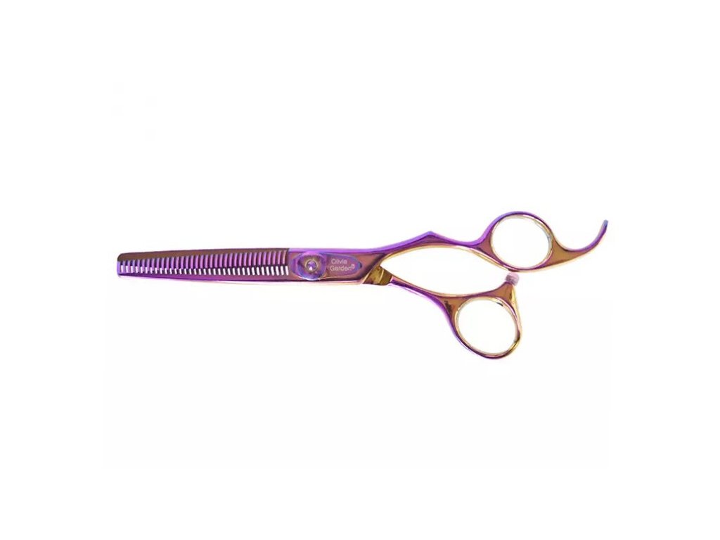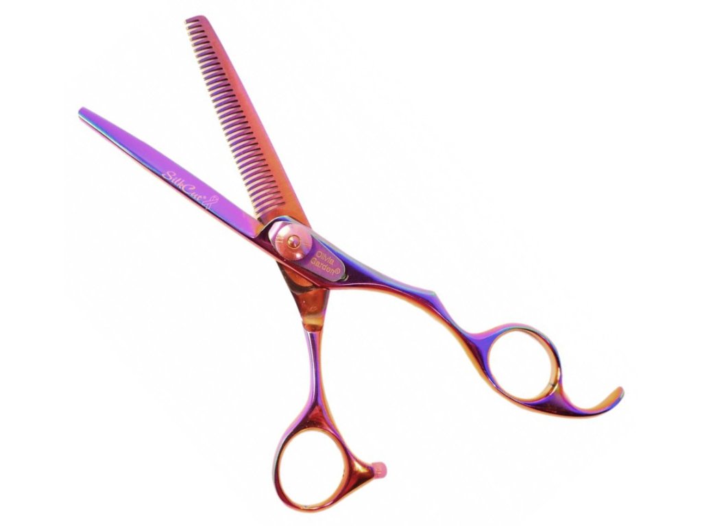 OLIVIA GARDEN - SilkCut Thinner Rainbow 6.35 - efilační profesionální kadeřnické nůžky na vlasy 6,35" * 35 zubů s mikroozubením * Ergonomicky tvarovaná rukojeť umožňuje držet nůžky všemi prsty a tím usnadňuje stříhání * Opěrka prstu zajišťuje komfortní držení nůžek * Středový regulovatelný šroub umožňuje vlastní nastavení chodu * Broušené diamantem, ostří honováno, vynikající pro klouzavý střih * Komfortní doraz * Vysoká tvrdost ocele * Konvexně tvarované břity *