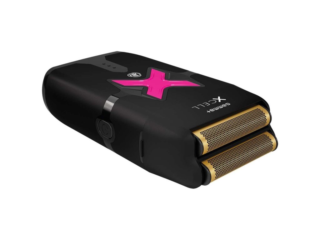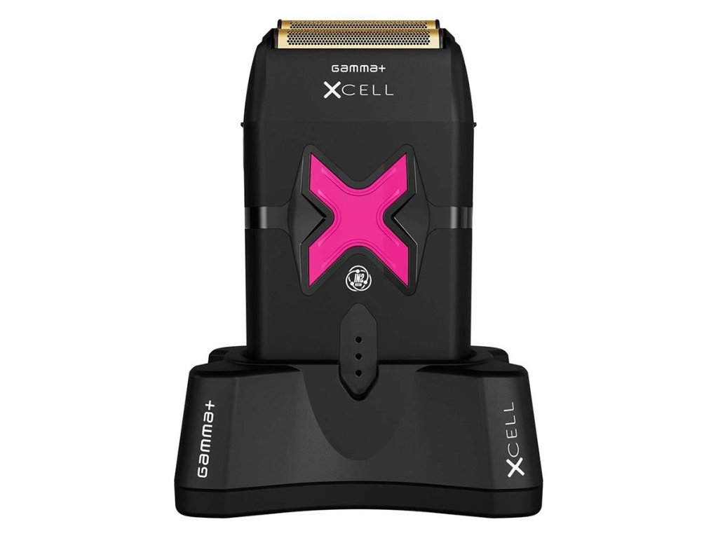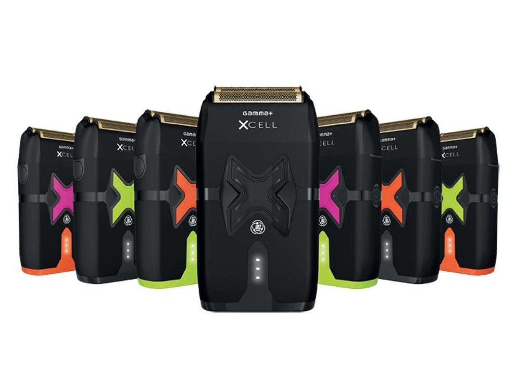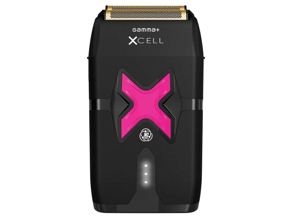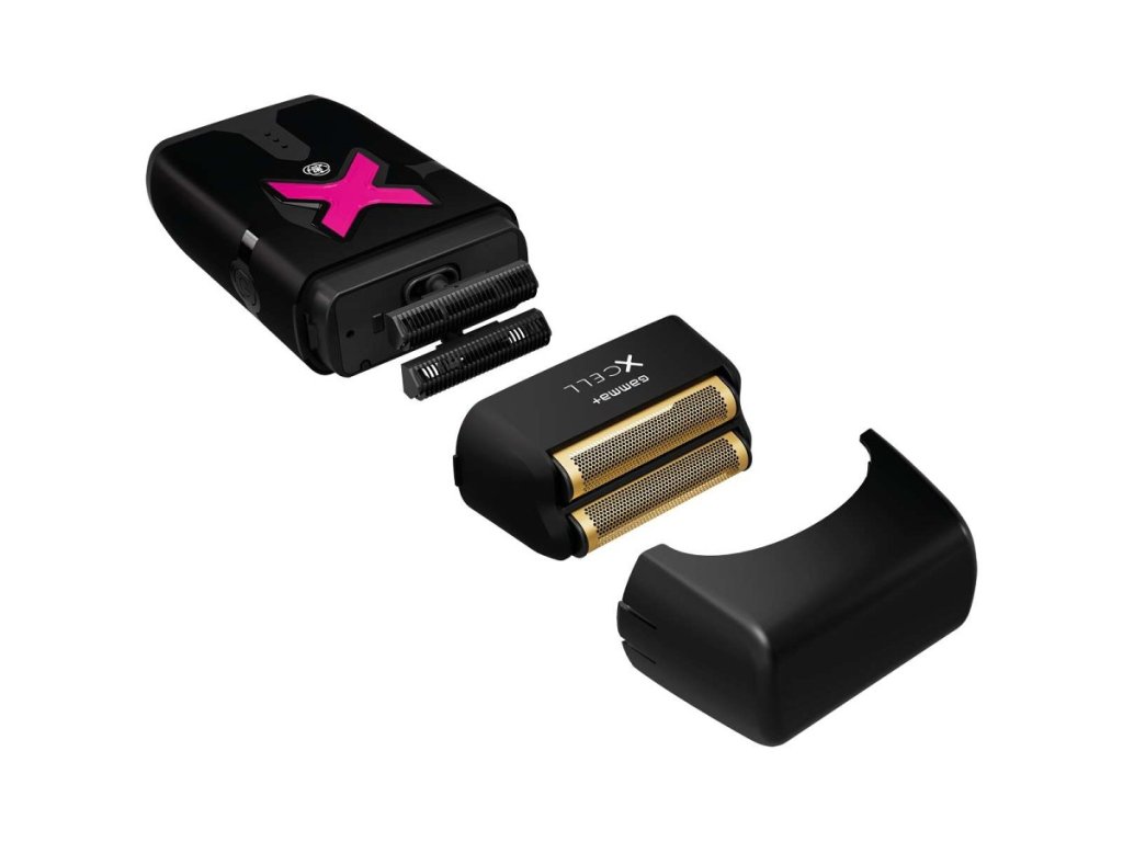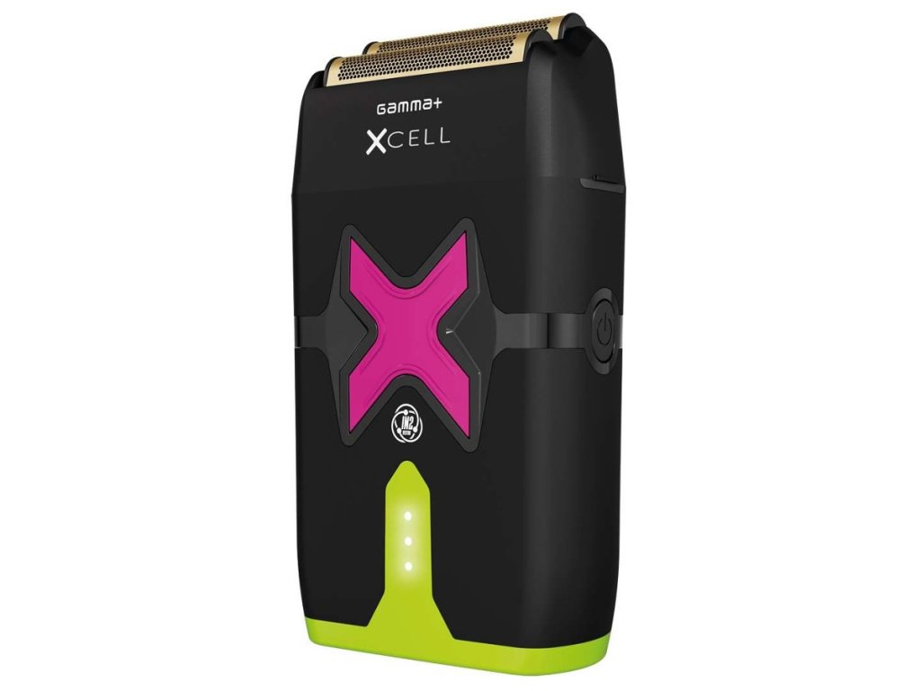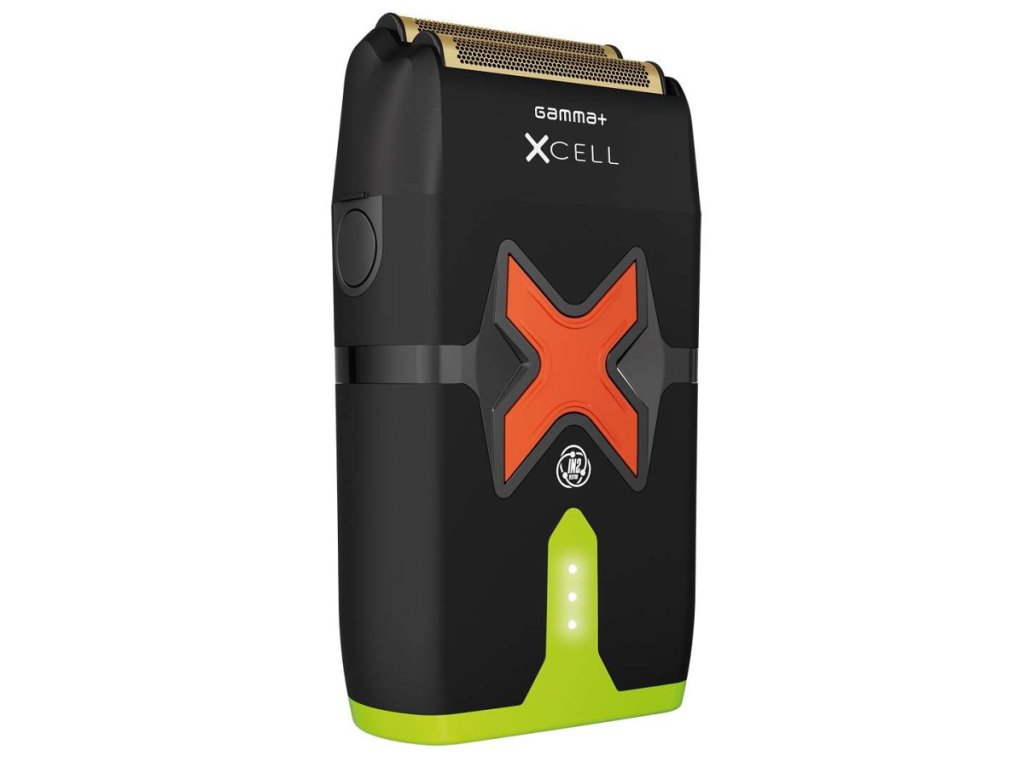 Profesionální dvouplanžetový strojek GAMMA+ XCELL shaver s celohliníkovým tělem, výkonným motorem s 11 500 ot./min., hypoalergenní fólií ze zlatého titanu a výdrží až 120 minut.
