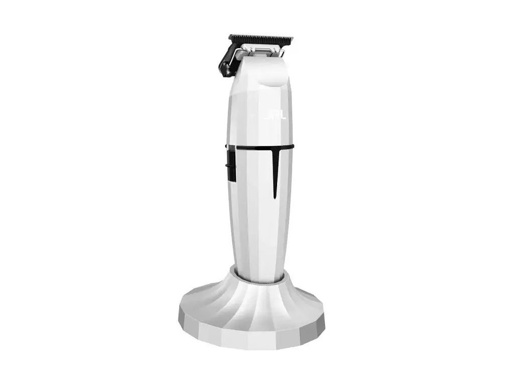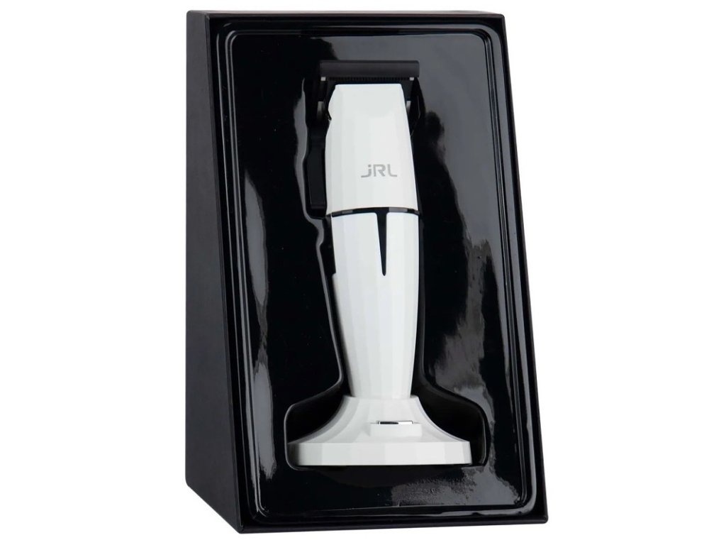 Profesionální bezdrátový konturovací strojek JRL Ghost Trimmer 2020T-B v ikonickém bílém designu nabitý inovativními a patentovanými technologiemi. Tichý chod, prodloužená 3,5-hodinová výdrž baterie, nepřehřívající se 360° odkrytá čepel či speciální nabíjecí stojánek v balení.