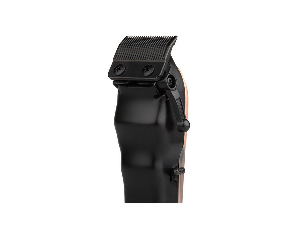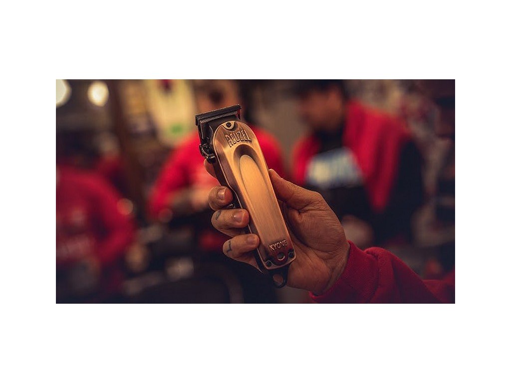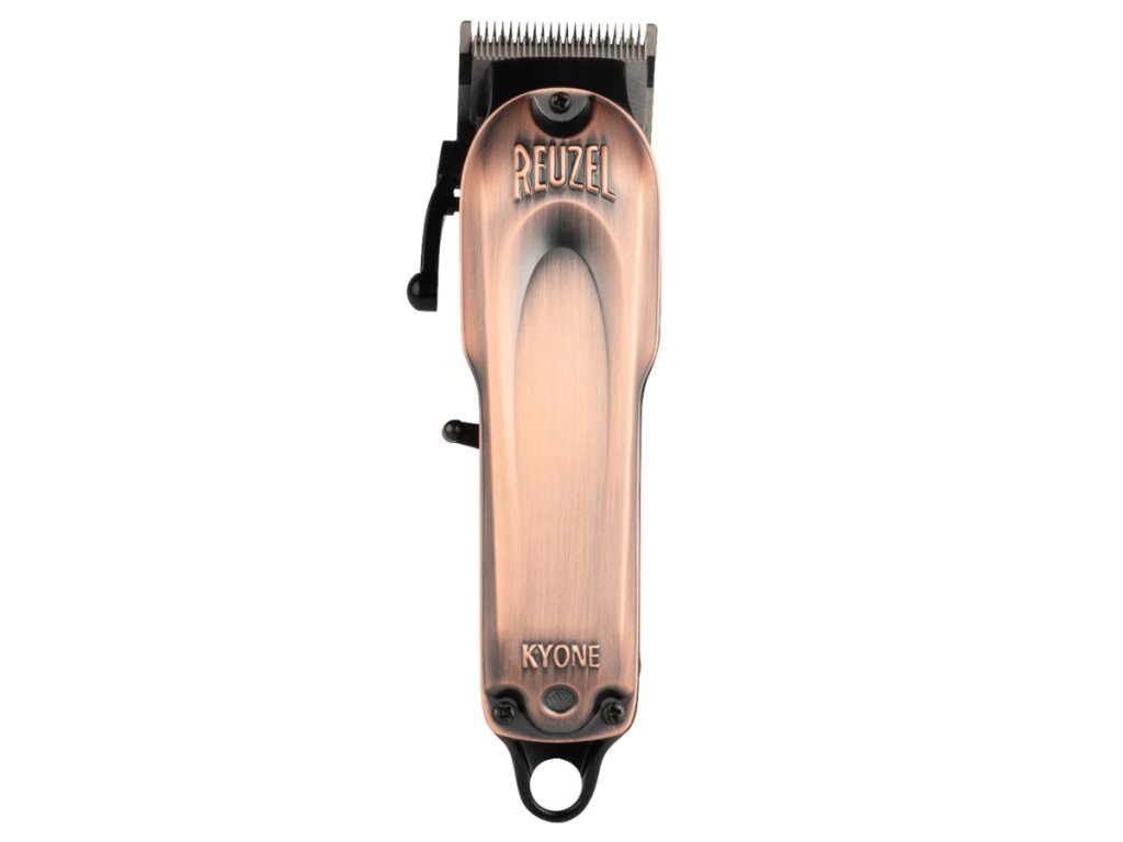 Elegantní, celokovové tělo se stylovým krytem v barvě mědi v sobě uschovává silný rotační motor s 7200 otáčkami za minutu, jehož konstantní výkon je kontrolován mikročipem. Baterie s velkou kapacitou zajistí až 240 minut provozu strojku při plném, 180 minutovém nabití. Strojek je osazen kvalitní keramickou čepelí o šířce 46 mm, která má lepší odolnost proti opotřebení, bezkonkurenční ostrost a odolnost proti extrémnímu teplu. Reuzel x Kyone clipper je vybaven speciální technologií chlazení keramické čepele pro její 3-4x delší životnost. V balení naleznete rovnou i druhou fade hlavici. Výška střihu je nastavována pomocí páky od 0,5 mm do 3,5 mm. Díky své kovové konstrukci nepatří k nejlehčím strojkům (váží 405 g) a má robustnější tvar. Jeho konstrukce však přispívá k tichému chodu strojku a nízkým vibracím. Strojek Reuzel clipper poskytuje výkon na nejvyšší úrovni.