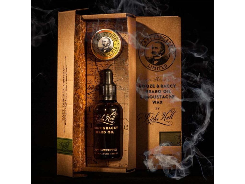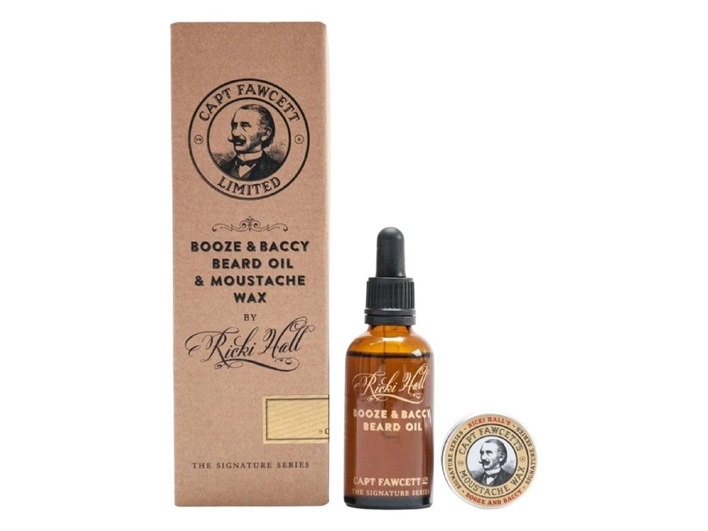Sada oleje na vousy a vosku na knír CAPTAIN FAWCETT Ricki Hall's Booze and Baccy Oil & Wax gift set – luxusní dárková sada oleje a vosku pro moderní gentlemany