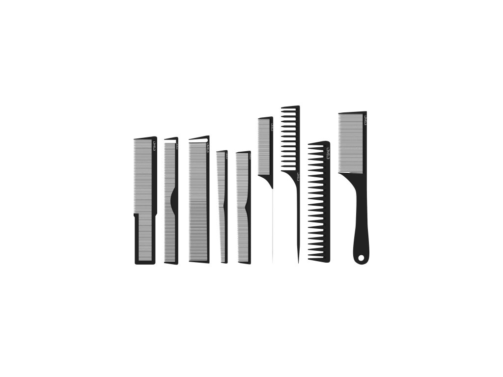 Sada prémiových hřebenů na vlasy LV3 obsahuje devět hřebenů vhodných pro profesionální i začínající kadeřníky a barbery. Hřebeny jsou uschovány v elegantním černém pouzdře.