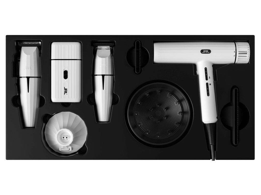 Speciální edice JRL Ghost Collection #3 obsahuje revoluční střihací strojek JRL 2020C-B, konturovací strojek JRL 2020T-B, holicí strojek JRL SF PRO a fén na vlasy JRL Forte Pro 2020H - všechny v ikonické bílé barvě. Ideální set pro barbery a kadeřníky, kteří hledají maximální výkon a exkluzivní design.