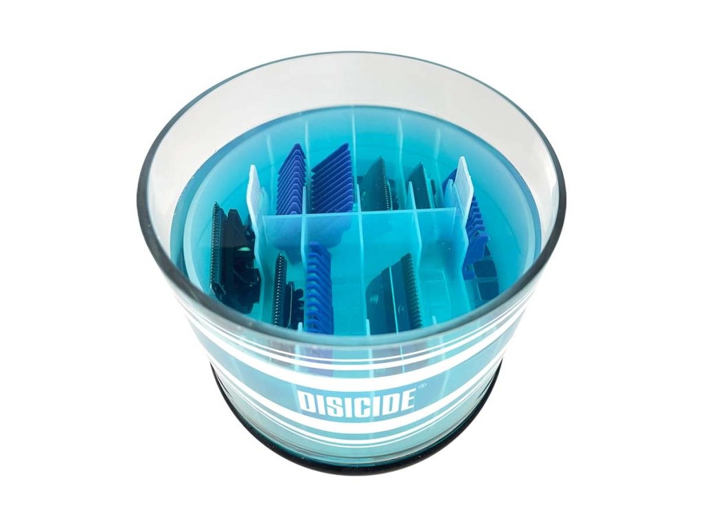 Skleněná nádoba DISICIDE Blade jar o objemu 1000 ml je navržena speciálně pro bezpečnou dezinfekci střihacích hlavic. Stabilní, stylová a praktická – ideální pro barbery a kadeřníky.