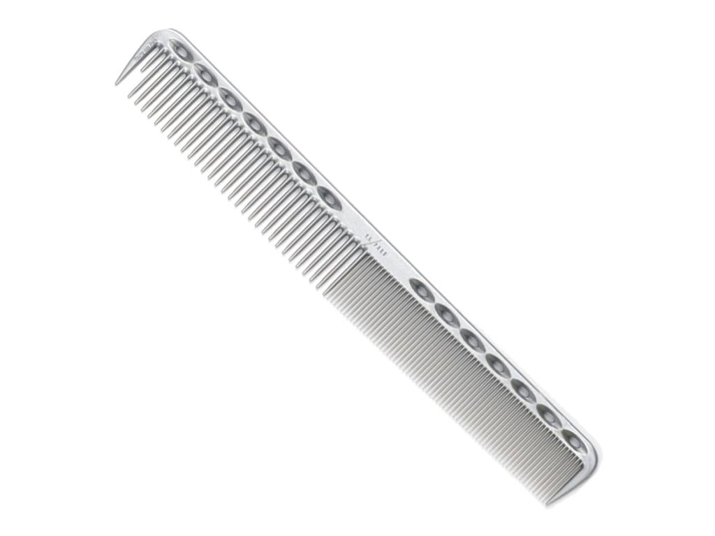 Profesionální stříhací hřeben Y.S. PARK YS-PC339 Silver v limitované stříbrné edici. Lehký, ergonomický, se zkráceným zubem pro přesné dělení vlasů a otvory po 1 cm pro snadné měření. Odolný až do 160 °C – oblíbený mezi barbery a kadeřníky po celém světě.