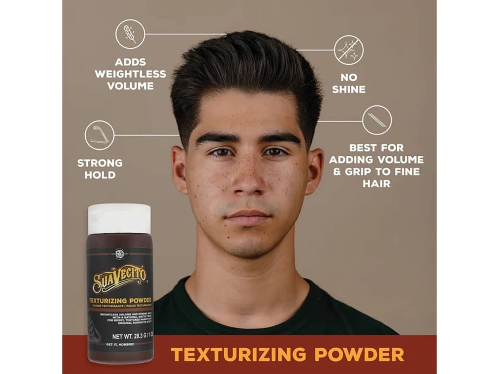 Texturizační pudr na vlasy SUAVECITO Texturizing powder - tenhle malý válečník bojuje za objem, když vaše vlasy vzdaly snahu držet tvar. Není to jen další prášek do vlasů. Je to čistá síla objemu zabalená v lehké, neviditelné formě. Ať už máte jemné, zplihlé nebo mdlé vlasy, tenhle pudr jim vrátí život. Bez lesku, bez slepení, bez kompromisů.