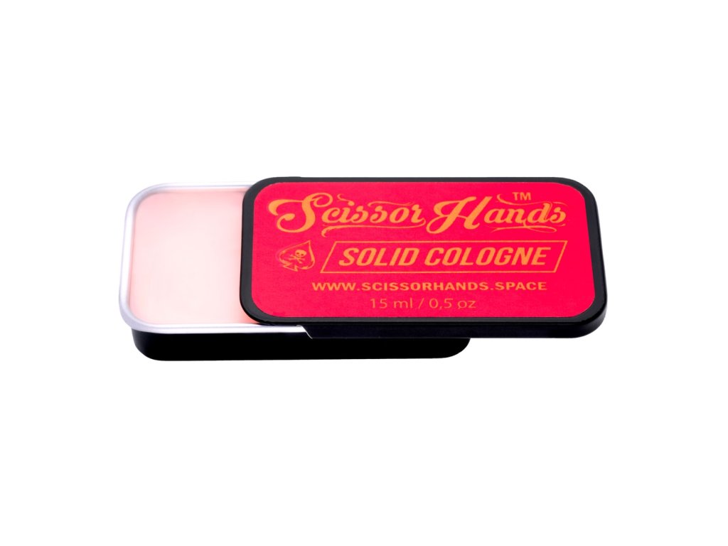 Tuhý parfém pro muže SCISSOR HANDS Pink poskytuje uklidňující, nasládlou, květinovou a přesto mužnou vůni kombinující májovou růži, mléko a malinu. Tuhá kolínská PINK se dodává v plechové krabičce, takže ji můžete nosit kdykoliv u sebe.