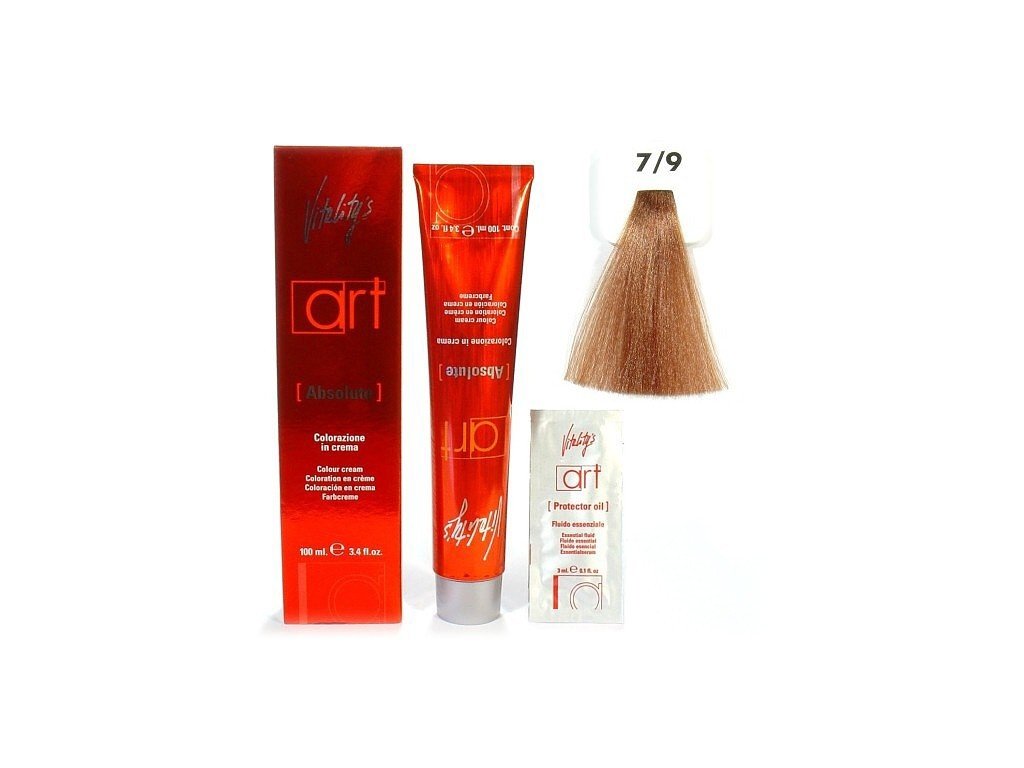 Permanentní barva na vlasy s vysokým leskem barvy. Delší trvanlivost a větší stabilita tónu barvy s novou vysokou schopností udržet odstín. přírodní esence ke zvýšení světlosti barvy u blond odstínů a větší intenzita a reflex červených a měděných odstínů. Nová technologie dvojího efektu, garantovaná exkluzivní formulí ochranného oleje s barvicím krémem Vitality´s Art Absolute. Maximální ochrana díky výtažkům lípy a aksamitníku. Delikátní vůně, která dělá barvení vlasů příjemnější.
