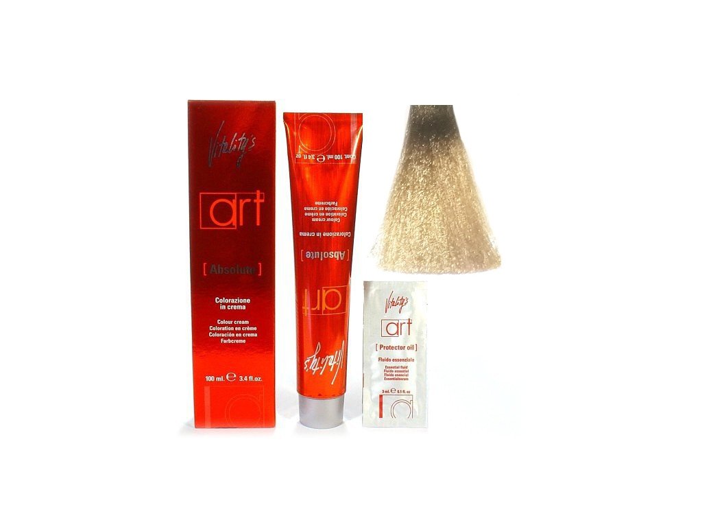Permanentní barva na vlasy s vysokým leskem barvy. Delší trvanlivost a větší stabilita tónu barvy s novou vysokou schopností udržet odstín. přírodní esence ke zvýšení světlosti barvy u blond odstínů a větší intenzita a reflex červených a měděných odstínů. Nová technologie dvojího efektu, garantovaná exkluzivní formulí ochranného oleje s barvicím krémem Vitality´s Art Absolute. Maximální ochrana díky výtažkům lípy a aksamitníku. Delikátní vůně, která dělá barvení vlasů příjemnější.